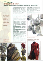 "Every time I discover new possibilities".Miriam Verbeek is a textile artist based in the east of the Netherlands. She has a back ground at the jewellery department of the Rietveld artschool in Amsterdam. She graduated with a collection of mourning jewellery (1993). Miriam exhibits in galleries, fairs and musea. Her work is acquired in private and musea collections. She has received multiple grants for her work. In her own studio but also other locations in the Netherlands and abroud she teaches both children and adults.