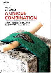 Artikel over het werk van Atelier Vuurwater, samenwerking van Els Bottema (keramiste) en Miriam Verbeek (viltkunstenaar)